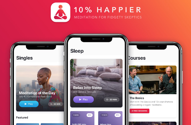 The Ten Percent Happier app is inspired by the book of the same name, written by ABC News anchor Dan Harris. Harris began his meditation journey after having a panic attack on live television while working at the ABC anchor desk. The app is particularly suited for what Harris calls “fidgety skeptics,” or people who are curious about meditation but feel like it might not be for them. (Harris felt the same way when he first got started!) The app provides quick meditations designed to be experienced on the go, with focuses on topics like anxiety and getting better sleep. The app can also help you track how many meditation days you can do in a row!